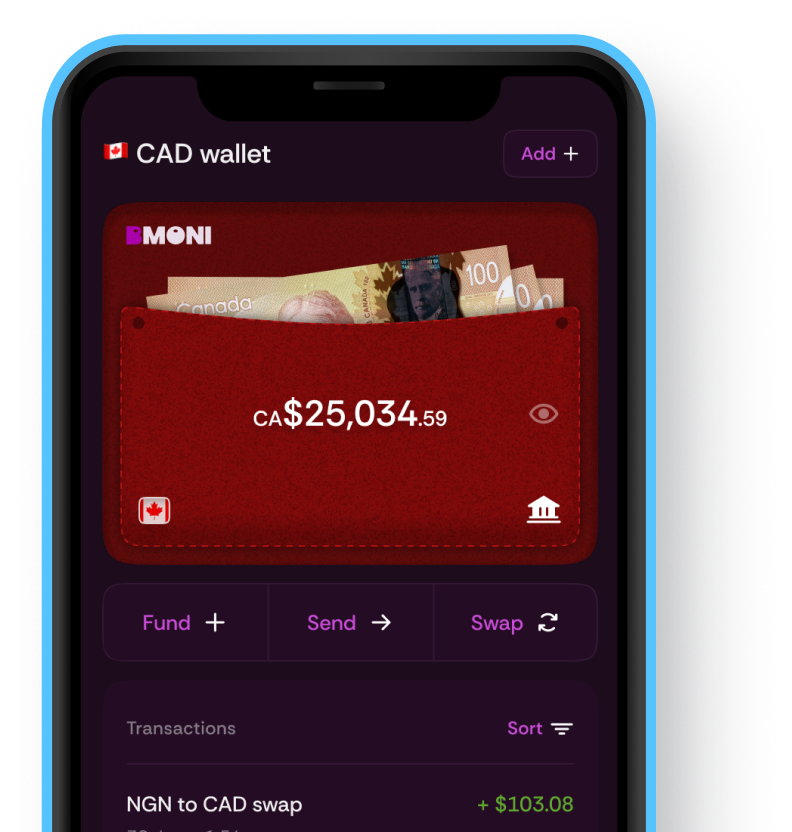 Easily swap your CAD instantly to Naira into your NGN Wallet. You can transfer Naira to any recipient in seconds